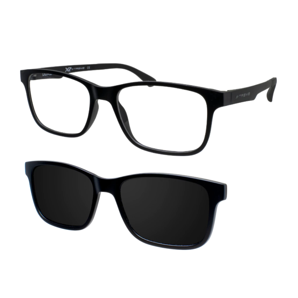 Destaques: Óculos XR clipon retangular, armação tamanho 53