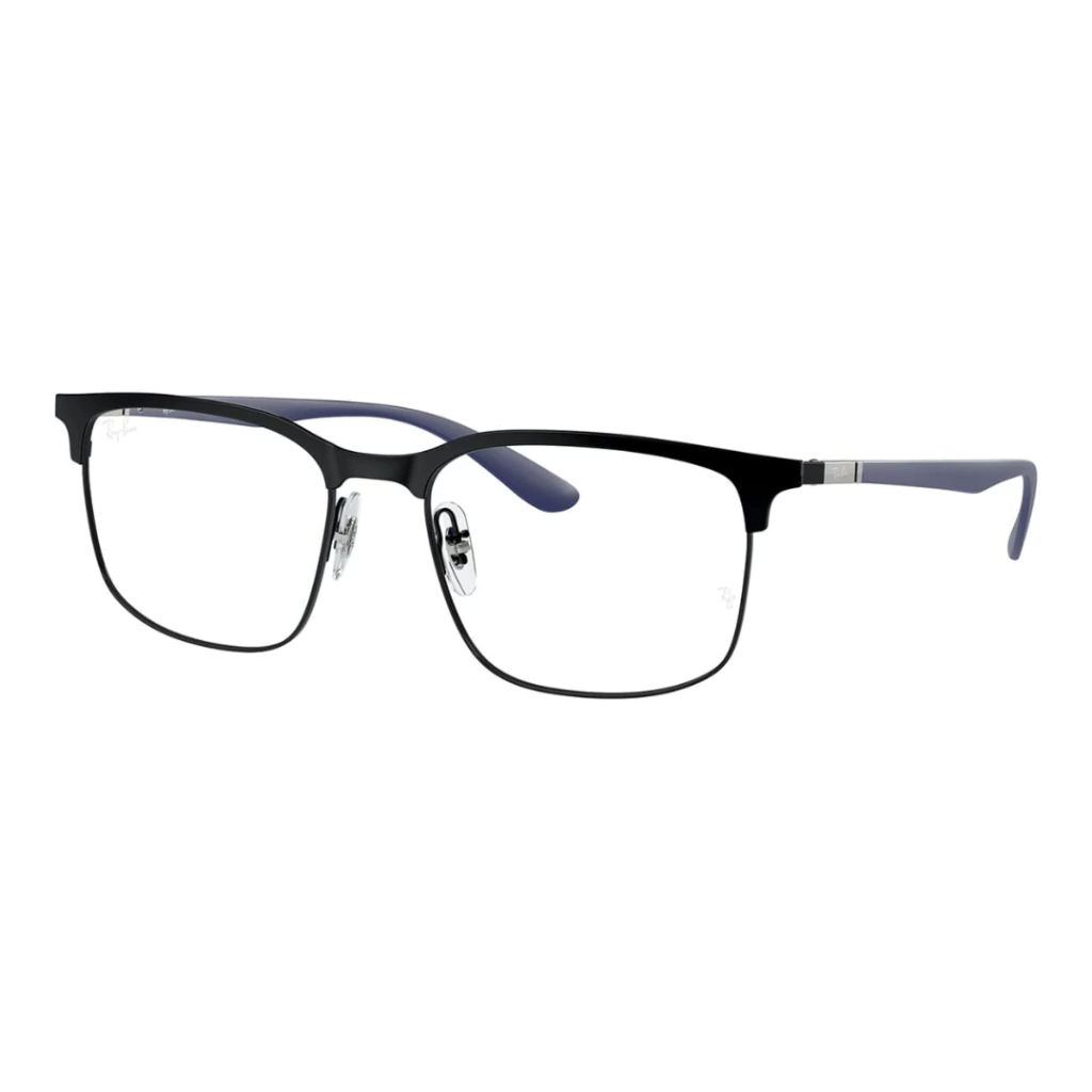 Descubra a combinação perfeita de design arrojado e conforto do Ray-Ban 6518. Este modelo masculino apresenta uma armação quadrangular em metal preto fosco e azul discreto.