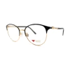 Armação de metal feminina redonda com acabamento preto e dourado, óculos de grau metal feminino aro redondo com sobrancelha em metal robusto.