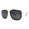 - Descrição: Óculos de sol com narizeiras ajustáveis, lentes na cor cinza com coloração intensa. Mistura de acetato com acabamento em metal dourado.