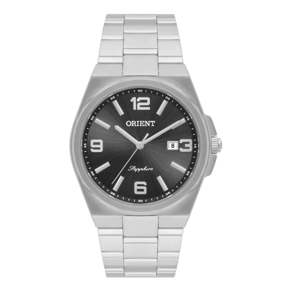 Relógio prata masculino estilo “PRX” ideal para uso casual. Modelo da Orient aço inoxidável e com vidro cristal de safira, garantindo que o relógio fique bonito por muito tempo.