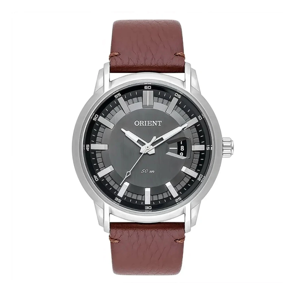 Procurando um relógio social? Este Orient de aço com pulseira de couro com certeza será uma excelente opção!