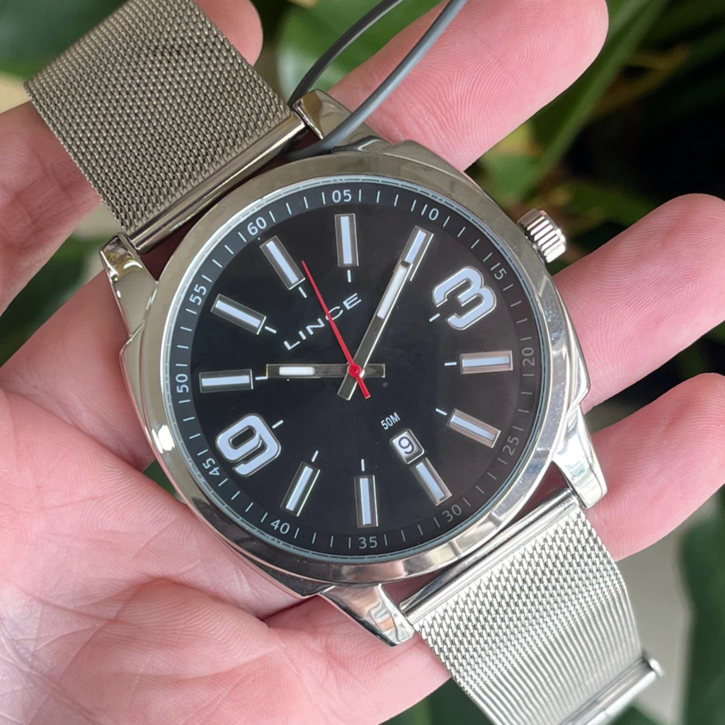 Material: Pulseira metal mesh + caixa de metal com fundo de aço