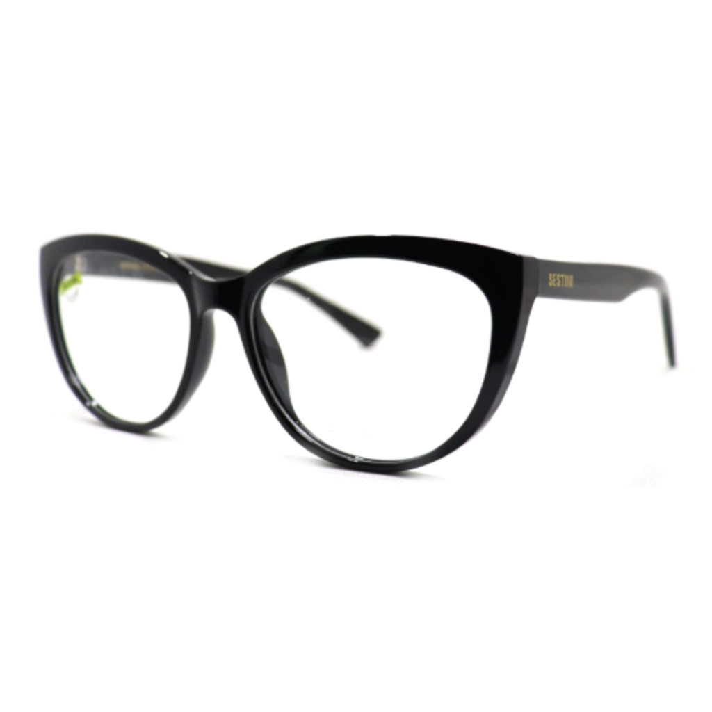Descrição: Armação de grau para mulheres na preto polido / preto brilho em acetato leve e confortável da marca Sestini.